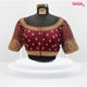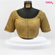 Designer two-toned shimmery readymade blouse with intricate thread-work embroidery at the neck and sleeves and embellished with swarovski stones.