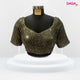 Designer mirror work V-neck black blouse with elbow sleeves.